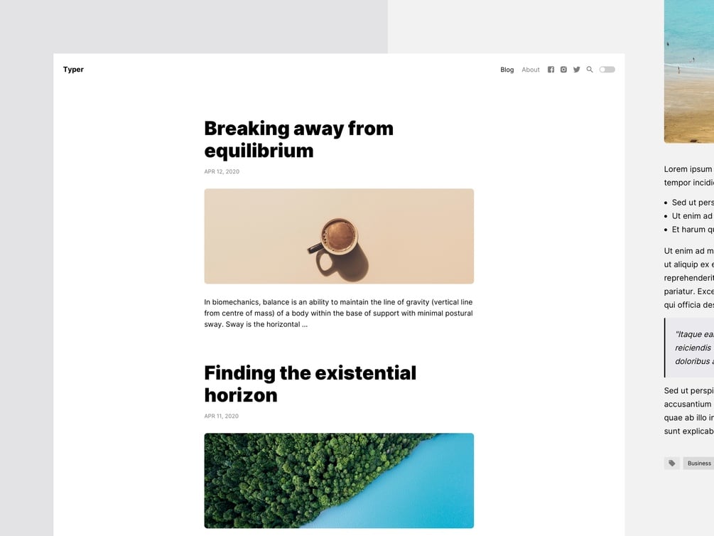 Create a clean and simple website centered around the blog. Typer theme is built on a custom framework making it light and super fast, perfect for a stunning and responsive website.