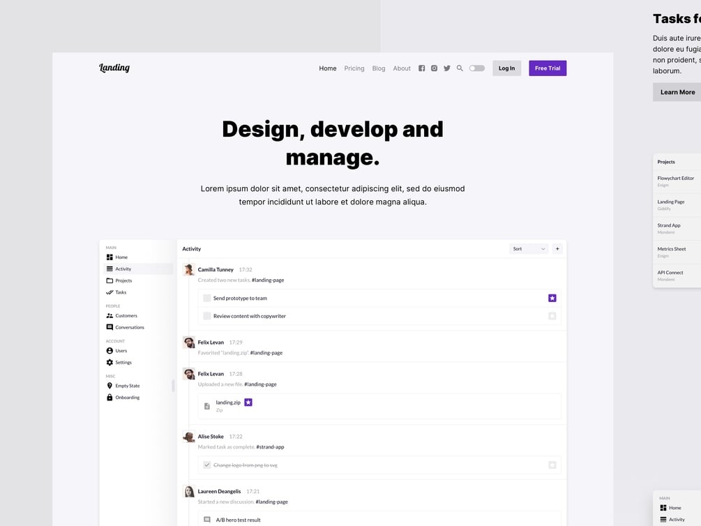 A perfect theme to create a landing page for your business. Landing theme is built on a custom framework making it light and super fast, perfect for a stunning and responsive website.